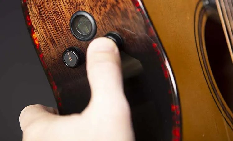 To test the instrument’s electronics, I plugged first into a portable PA system and then a Henriksen Bud combo amp. The warm clarity of the acoustic tone came through the electrified signal. Because the Fishman electronics include an undersaddle pickup, it had a bit of that snappy piezo tone, which I dialed down for solo playing. Just a pinch of an adjustment gave me a cozier presence, but I returned it to flat settings for some group playing, where it sat nicely in the live mix. In addition to bass and treble boost/cut, the electronics have phase reverse and an onboard tuner that’s accessible by pressing the volume control.