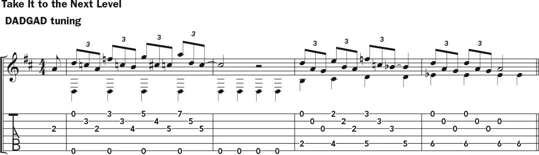 Begin the first week by familiarizing yourself with “Etude in E Minor,” as shown in Example 1. Although associated with the classical guitar tradition, this study also sounds wonderful on steel-string acoustic and provides ample potential for improvisation. It’s not necessary to already be able to play it flawlessly; in fact, I recommend beginning to improvise on this or any other piece while you’re still becoming familiar with its nuances.
