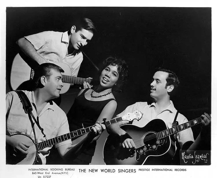 The New World Singers, (clockwise from top left): Happy Traum, Delores Dixon, Bob Cohen, and Gil Turner. Photo by Maurice Seymour